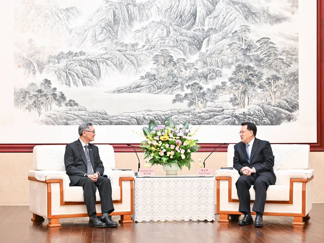 10月13日下午,市委书记袁家军会见了新加坡国立大学校长陈永财一行。