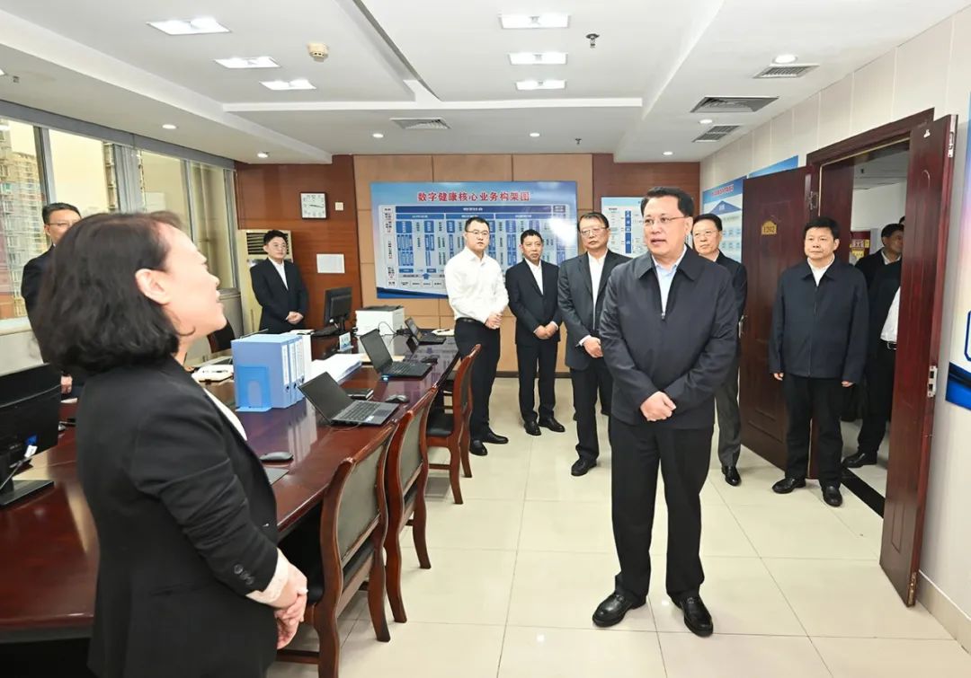 医疗健康是数字赋能服务人民群众的重要领域。袁家军来到市卫生健康委,走访食品卫生处、应急办公室和数字健康建设领导小组,与工作人员交流,了解相关情况,通过智能大屏察看医检互认应用运行状况。袁家军指出,要立足人的全生命周期医疗健康服务,用好数字化手段,找准小切口、拓展大场景,让数字化更好服务人民群众医疗健康需求。要加快构建横向联通、纵向贯通的医疗卫生体系,提升多跨协同治理能力,扎实解决群众看病难、看病贵问题,更好推动医疗资源优质均衡共享。