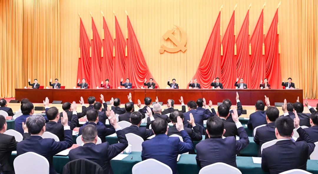 12月26日,会议举手表决通过《中共重庆市委关于深入贯彻落实习近平总书记重要指示精神奋力实现“三攻坚一盘活”改革突破的意见》和全会决议。记者 苏思 摄/视觉重庆