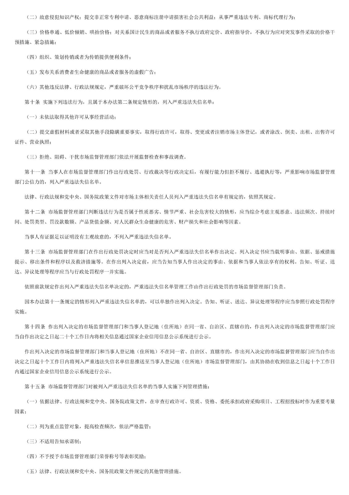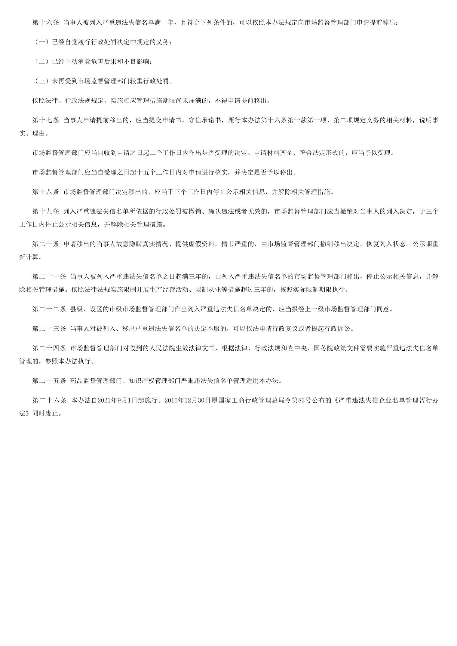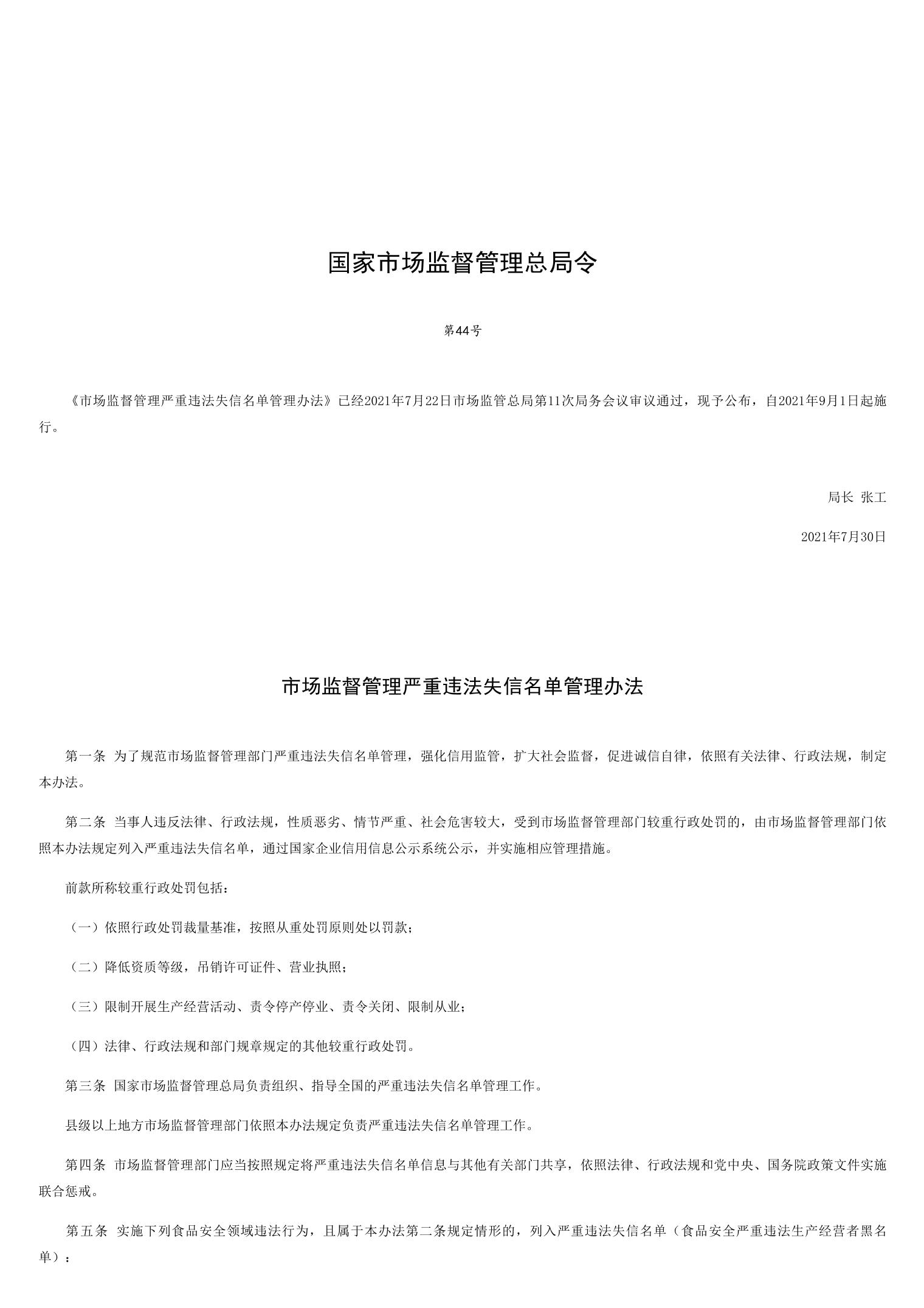 市场监督管理严重违法失信名单管理办法